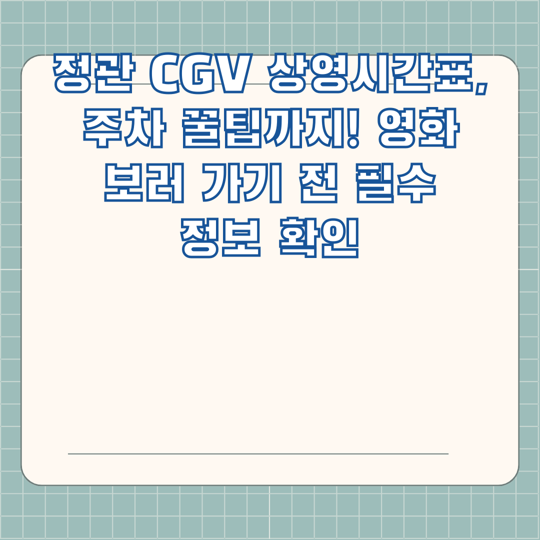 영화 보러 가기 전에 꼭 확인해야 할 필수 정보! 정관 CGV에서 어떤 영화가 상영되고 있을까요? 혹시 상영 시간표를 미리 알아보고 싶거나, 편리한 주차 정보를 찾고 있다면 이 글에 주목해주세요! 정관 CGV의 상영 시간표 확인 방법부터 주차 정보, 그리고 놓치면 아까운 꿀팁까지 알려드릴게요! 영화 관람 계획을 세우는 데 도움이 될 유용한 정보들을 준비했으니, 편안하게 읽어보시고 즐거운 영화 관람 시간 보내시길 바랍니다.