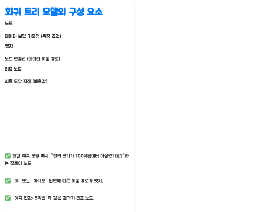 회귀 트리 모델은 다음과 같은 구성 요소로 이루어져 있어요.