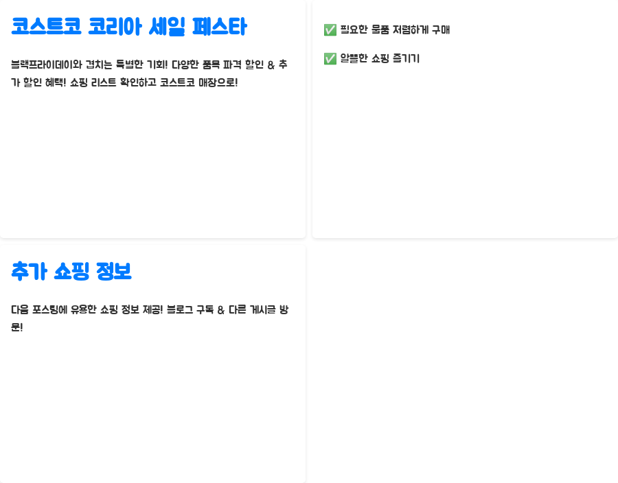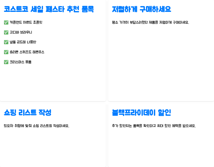 또한, 블랙프라이데이 연계 행사를 통해 더욱 큰 혜택을 누릴 수 있는 기회가 있으니, 코스트코 홈페이지나 매장에서 자세한 내용을 확인해 보세요.